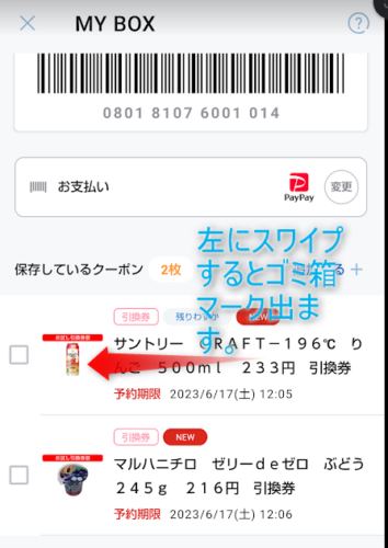 【ローソンのお試し引換券】マイボックスから予約した商品を削除する方法が分からない