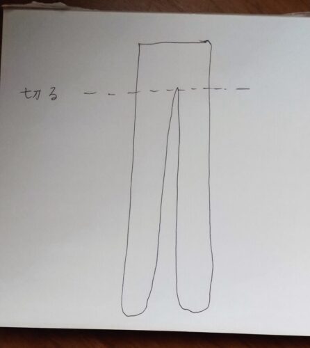 ストッキングやタイツを足の部分2本とおなかの部分と3つに切り分ける。