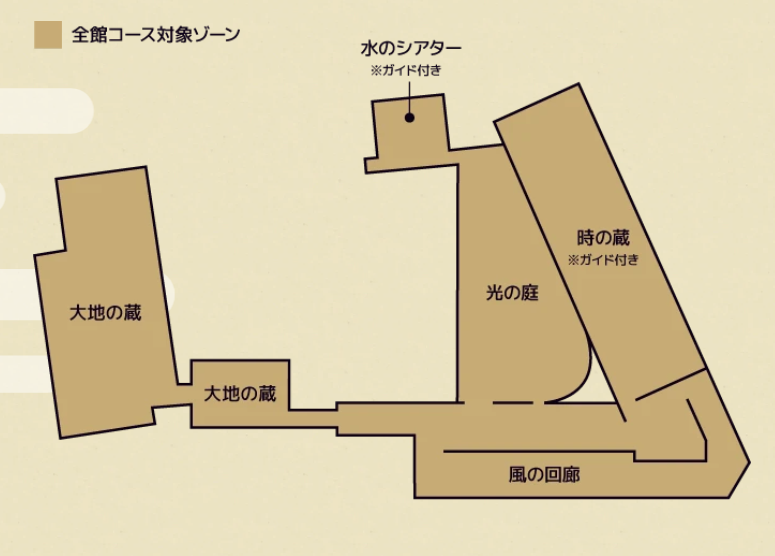 全館コースは「風の回廊」から「水のシアター」までガイドさんがついて説明しながらとなります。