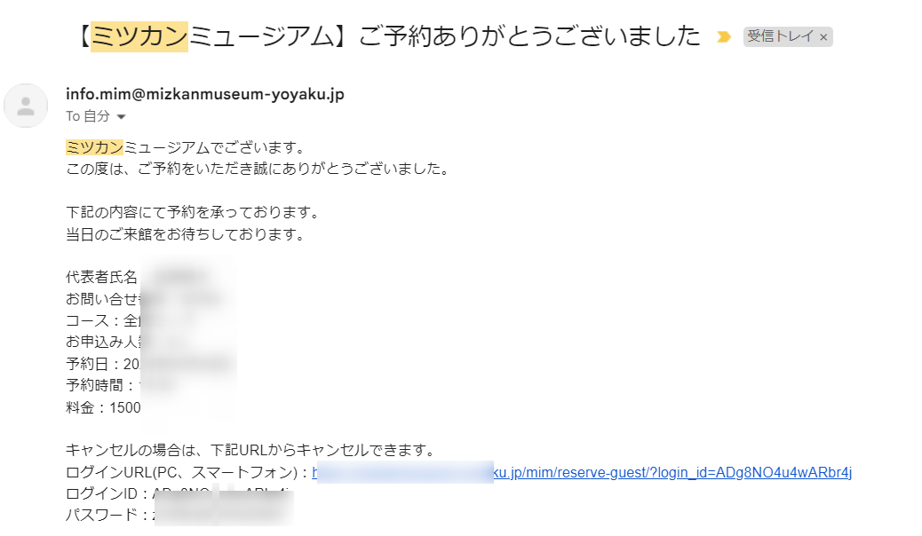 予約が完了すると、登録したメールアドレスに確認メールが届き、そちらにキャンセルリンクがあります。