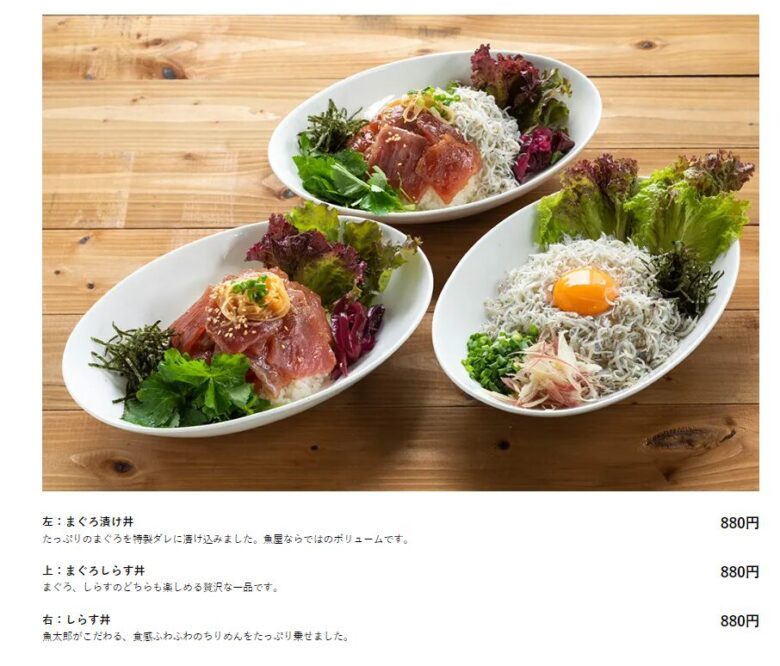 魚太郎の素材を使ったどんぶりランチや、カフェっぽいおしゃれなプレートがリーズナブルにいただけます。