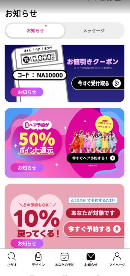 ネイリーではアプリとWebサイトがありますが、アプリの方が出来ることが多い為おすすめです。