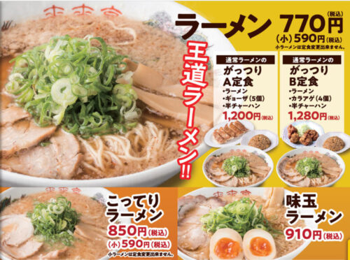 来来亭は、麺大盛りが2倍量、ランチはライス無料、ネギ多めが無料、アプリでトッピング無料など、ラーメンチェーンの中ではお得だと思います。