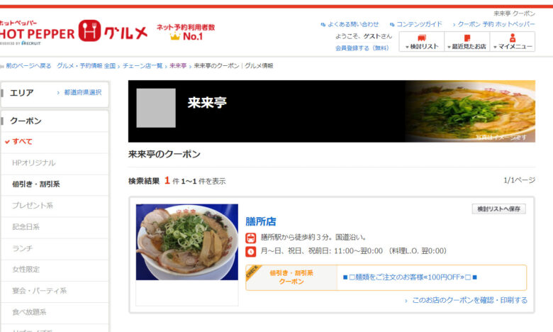 来来亭は残念ながら、クーポンサイトなどにはほぼクーポンがありません。