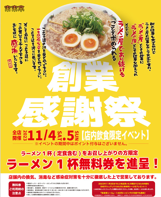 来来亭は毎年11月に、「創業感謝祭」というイベントをしています。