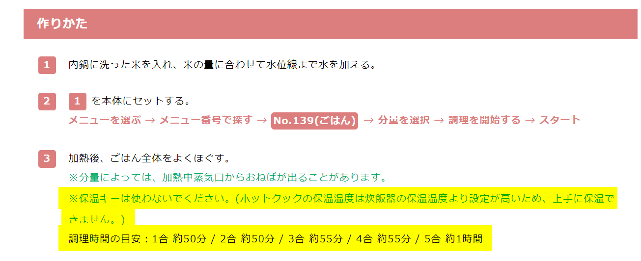 しかも、「保温は上手にできない」とありますので、せっかく予約炊飯しても、出来上がり後すぐに食べるか、他の容器に移さないとないといけないので、勝手が良くないですね。