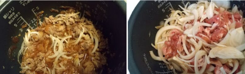 普通に鍋で作るのと同じ分量の調味料と材料を入れて、炊飯スイッチを押すだけなので超簡単です。