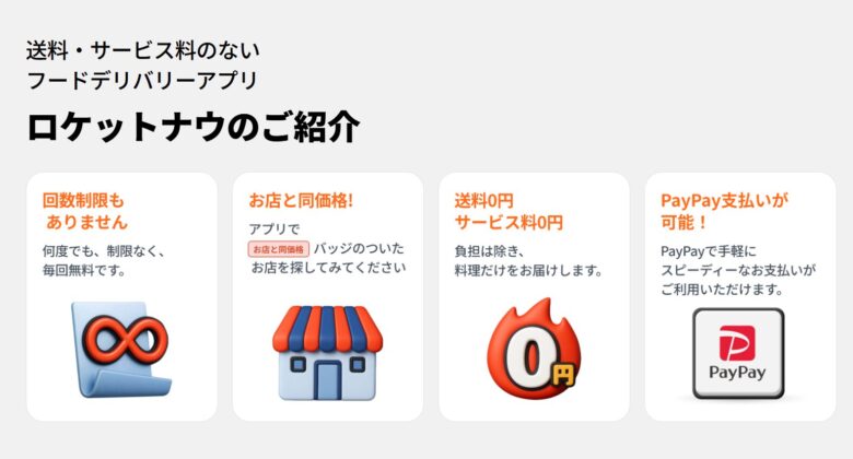 一方のロケットナウは、対象店舗だけではあるものの、本当に店頭で食べる価格と同じです。