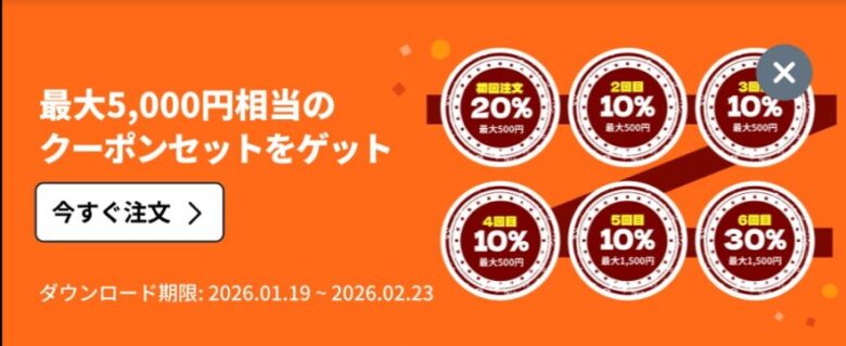 普通にダウンロードして初回クーポンでパパッと注文を済ませるのが、一番タイパもコスパも良いですよ!