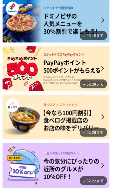 ロケットナウは常時お得なキャンペーンを実施していて、一度利用し始めると、頻繁にお得な限定クーポンが配信されます。