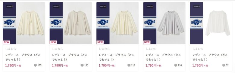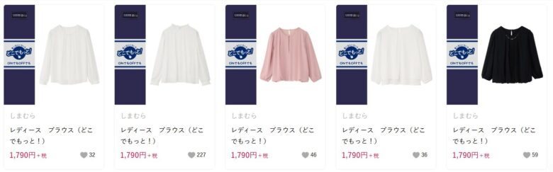 | ブラウス | 白、ベージュ、薄いグレー、黒が揃い、デザインも豊富 | 1,780円~ |