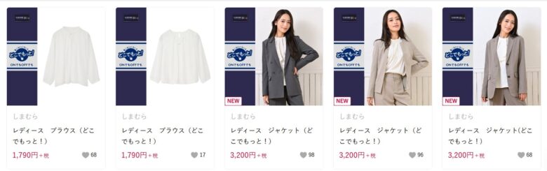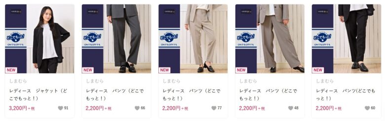 | ジャケット(単品) | シンプルデザインが中心。黒、ベージュ、グレー、紺があり | 3,200円~ |