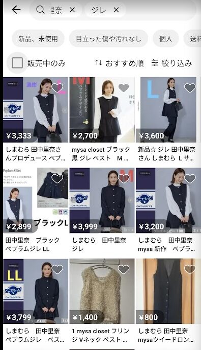 | ジレ | 黒、ベージュ、紺あり、ボタン付き、ロング、ぺプレムなどのデザイン違いあり。 | 2,700円~ |