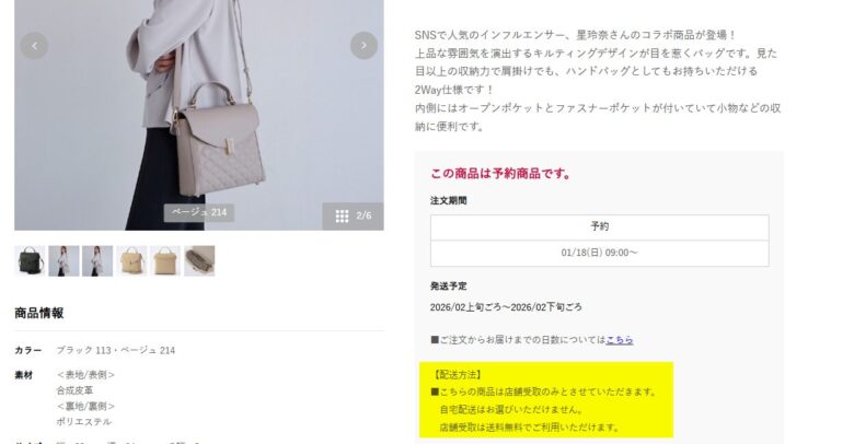 また、特にインフルエンサーとのコラボ商品は、配送は不可で店舗受け取りのみの場合も多いです。