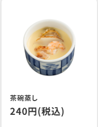 - 茶碗蒸し:ホタテ、えび、鶏もも肉と具が豪華なのに安い