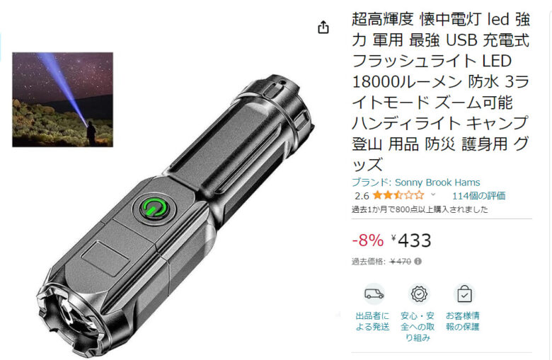 | LED懐中電灯(フラッシュライト) | 498 | 433 | 65 |