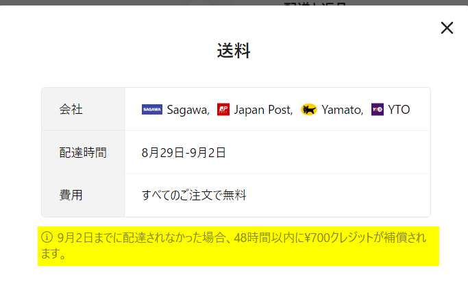 しかも配達日を過ぎた場合は、700円のクレジットが保障されるとあります。