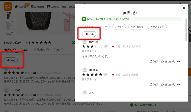 - ほとんどの人はTemuの買い物で満足していてリピーターも多い