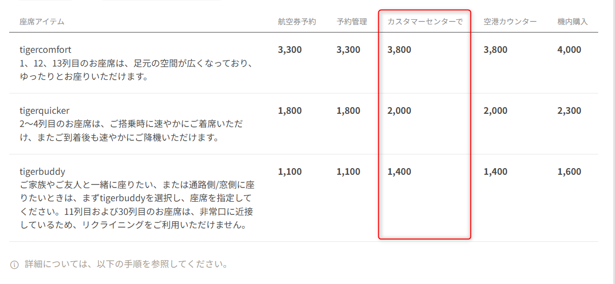 タイガーエアで自分で座席指定を申し込む場合の料金と手順