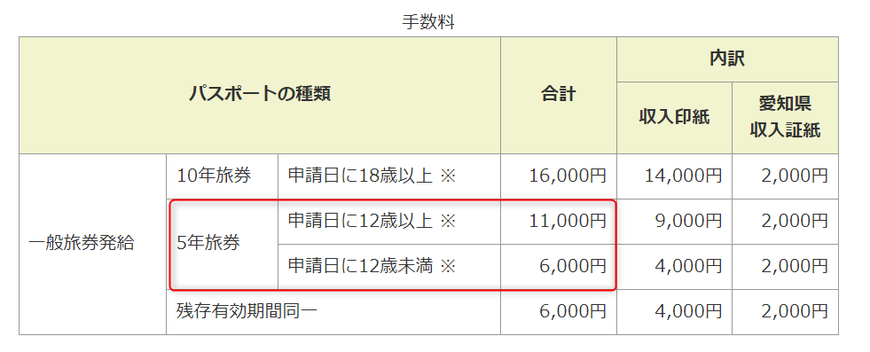 12歳以上は申請料が高くなる
