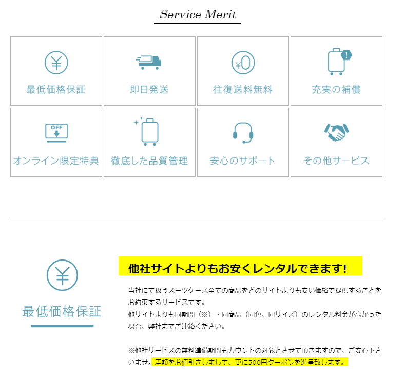 何故なら最低価格保証が付いている為、どこよりも安くレンタルできるからです。