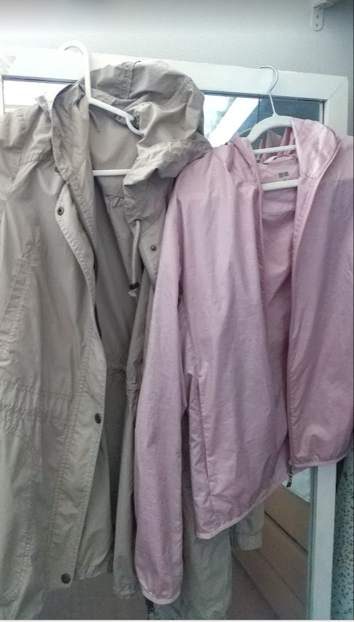 軽くて小さくたためるウインドブレーカーが便利です。
