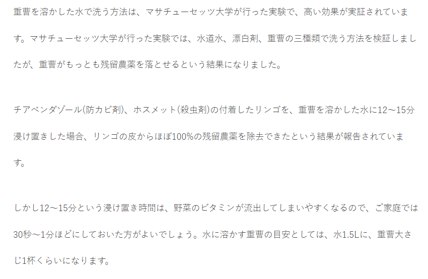 重曹水につける方法が農薬を除去する、最も高い効果があるそうです。