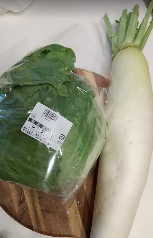 水1.5Lに、重曹大さじ1杯ほどを溶かして、野菜を浸けます。
