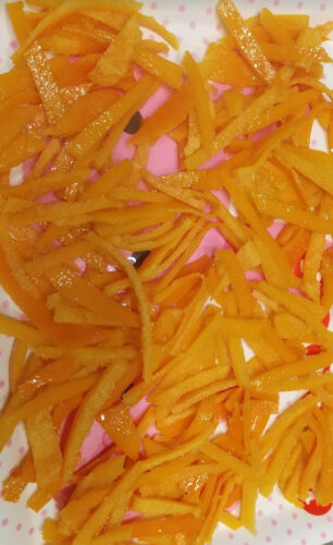 そしてやっとできたオレンジピールは市販のものとは程遠い。