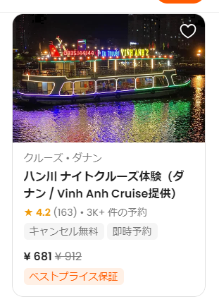 私達はklookで、サンワールドアジアパーク、ハン川ナイトクルーズ、ココナッツボートを購入しました。