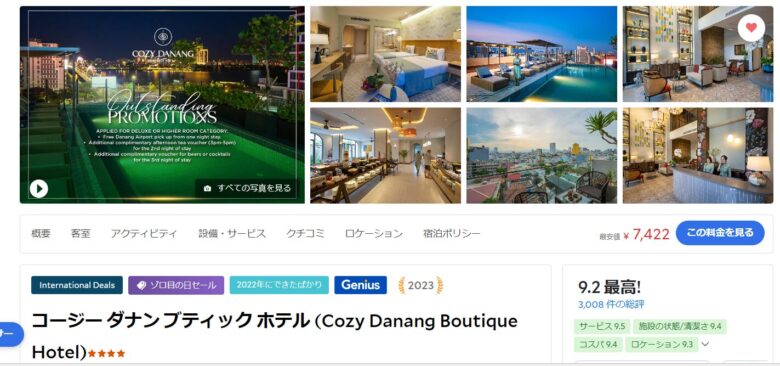 先のコージーダナンブティックホテルよりだいぶ高いですが、正直ダナンブティックの方が、満足度は高かったです。