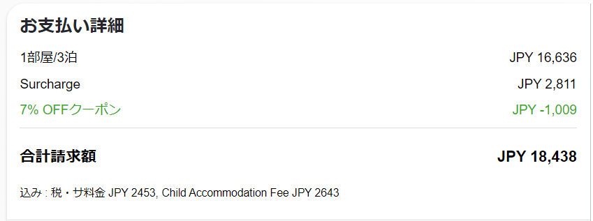 209,900円の内訳は、大人(74,580円×2名、子供60,740×1名)です。