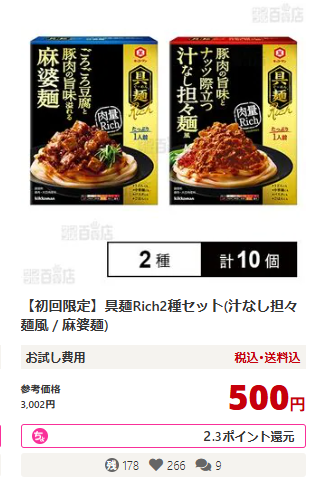 👇汁なし担々麺と麻婆麺のレトルト 10個で500円!
