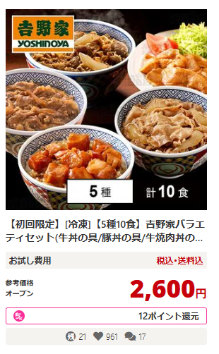 人気の吉野家の牛丼冷凍10食セットは10食2600円!冷凍ですが送料も無料です。