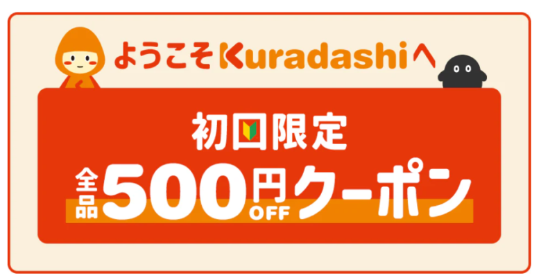 Kuradashiとベルーナグルメは会員登録で、初回から使える500円割引クーポンがあります。