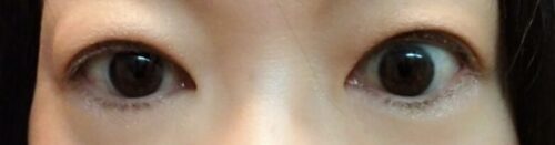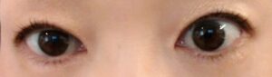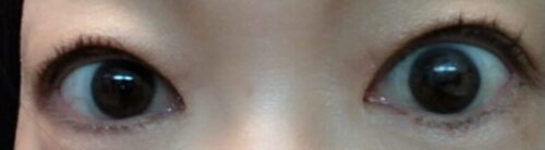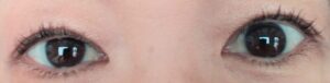 ビューラーにワセリンをぬって挟むだけで、まつ毛がパッチリ上に上がって人形のような目になっています。
