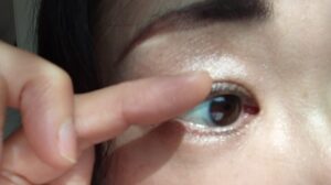 ついでに下まつ毛も少しワセリンをついた指で触ると、束感が出て目が大きく見えます。