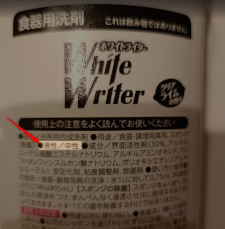 食器用洗剤はたいてい中性ですが、念のため中性の表示を確認しましょう。