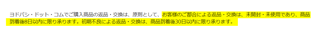 出典: ヨドバシ・ドット・コム「返品・交換について」