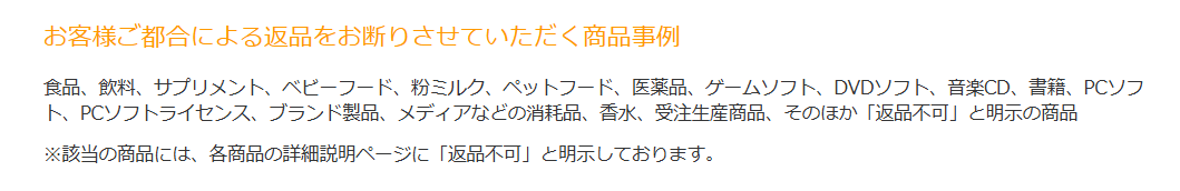 例えば、食品は返品不可です。意外ですが、ゲームソフトや書籍も返品不可なので注意しましょう。