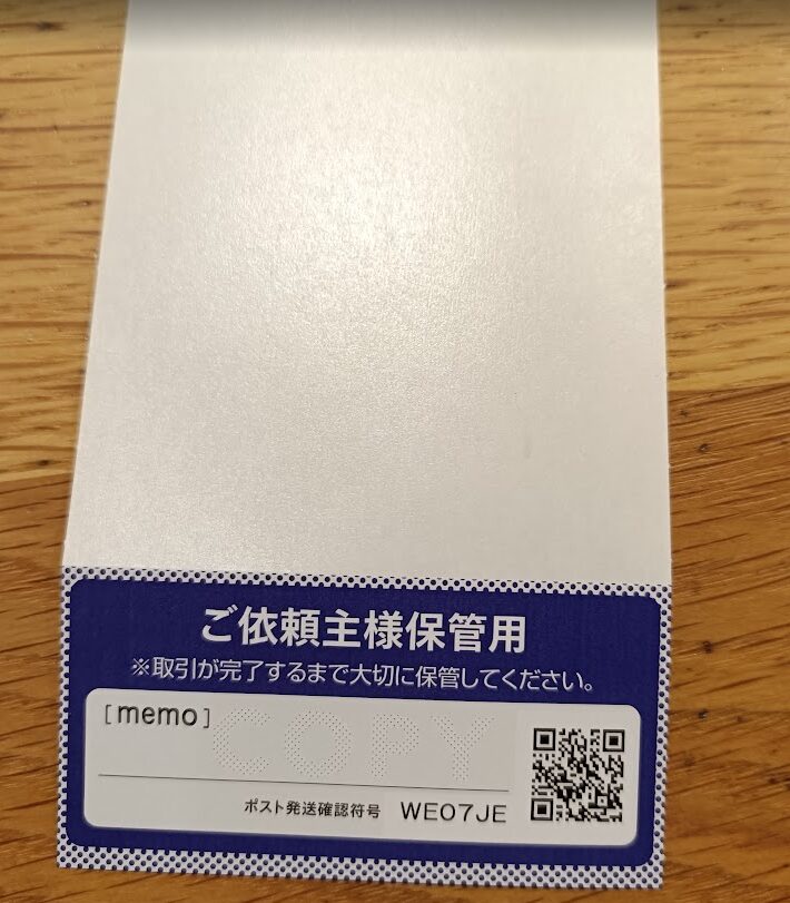 💡 ポイント: 控えの剥離紙は、読み取り忘れに備えた”保険”です。ゆうパケットポストの発送用シールを剥がした際に残る台紙部分にQRコードが印刷されています。